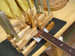 | オッキオ・ギター ネック加工-07 ヘッドバインディング、ヘッド裏の突き板 | ||